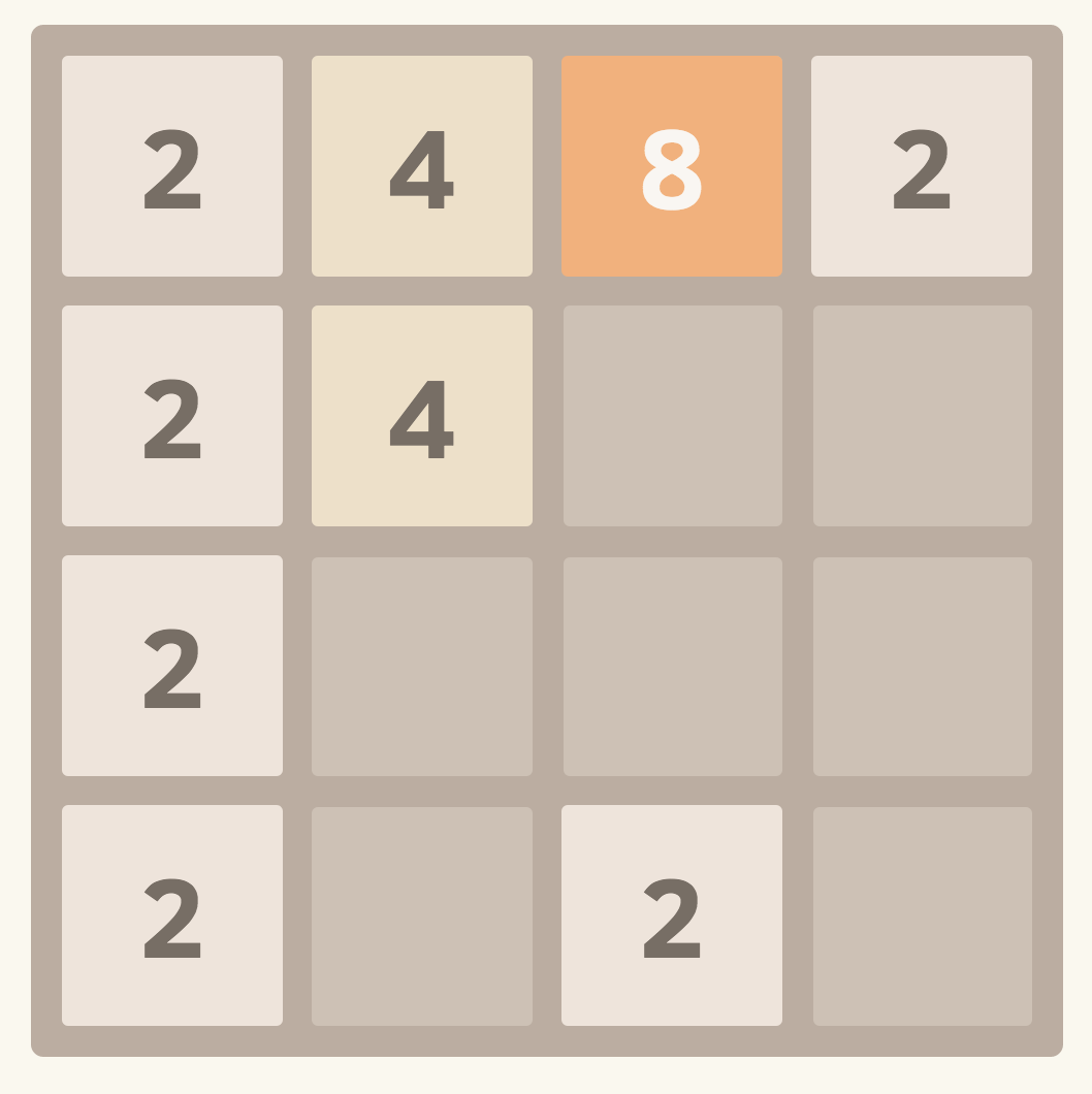 2048 게임은 4×4 크기의 보드에서 혼자 즐기는 재미있는 게임이다. 이 링크를 누르면 게임을 해볼 수 있다.
