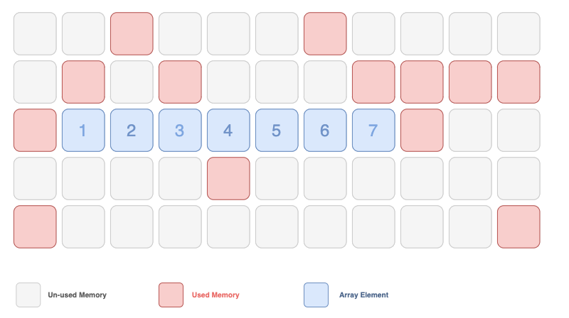 - 배열은 순차적인 데이터, 즉 메모리 영역이 연속적으로 사용됩니다.